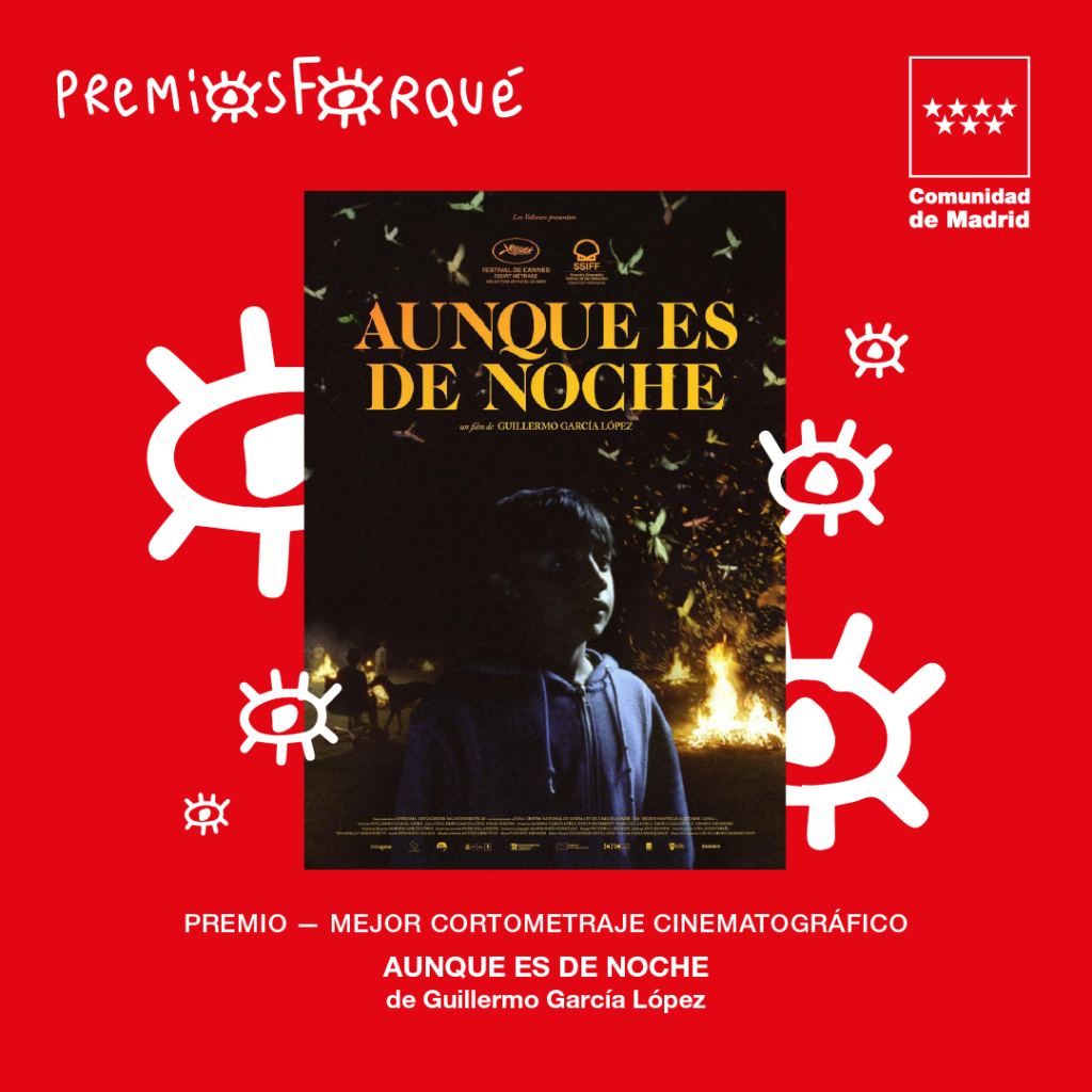 El cortometraje Aunque es de noche de Guillermo García López es la producción premiada con el galardón a Mejor Cortometraje que ha contado con apoyo de la Comunidad de Madrid a través de las ayudas a la producción de cortometrajes de la Consejería de Cultura, Turismo y Deporte. Galardonada con el Premio de la Comunidad de Madrid en la 25ª Semana del Cortometraje, la coproducción hispano-francesa de las productoras Sintagma, Les Valseurs y Salon Indien Films sigue su exitosa trayectoria de premios, tras haber formado parte de la selección de cortometrajes en la última edición del Festival de Cannes.