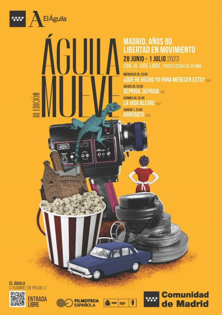 Un ciclo de cine de verano que compartirá espacio con la propuesta musical Águila Suena del 20 al 25 de junio. Dos festivales de cine y música para rendir homenaje al Madrid de los años 1980, coincidiendo con el 40º aniversario del Estatuto de Autonomía de la Comunidad de Madrid. Ambos certámenes tienen por objetivo recuperar el espíritu espontáneo, plural y caleidoscópico del Madrid de los años ‘80, donde la música y el cine, entre otras disciplinas como las artes plásticas o la moda, fueron algunos de los canales creativos y efervescentes del oasis cultural que atravesaba la ciudad.