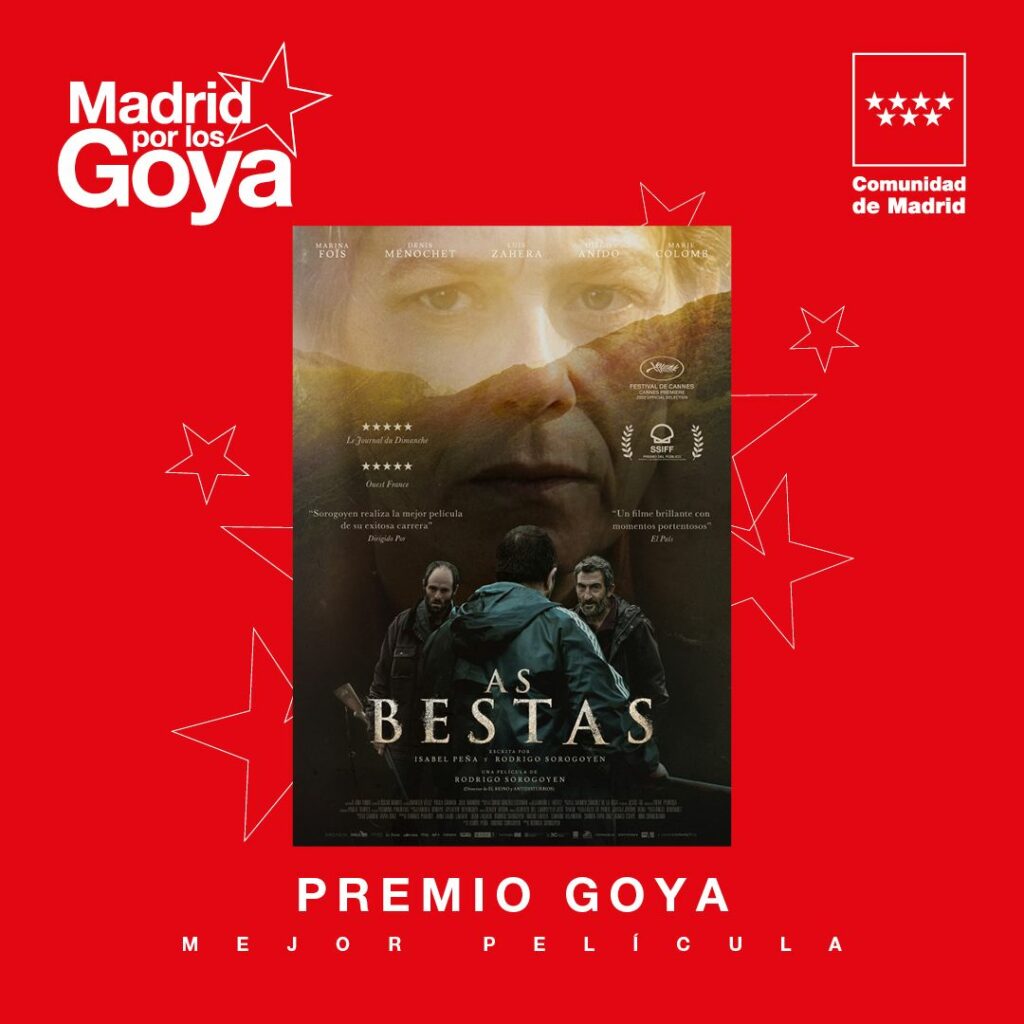 Los Premios de la Academia de Cine galardonan a los largometrajes «As bestas»(9), «Cinco lobitos» (3) y «Cerdita» (1), apoyados por la Comunidad de Madrid.