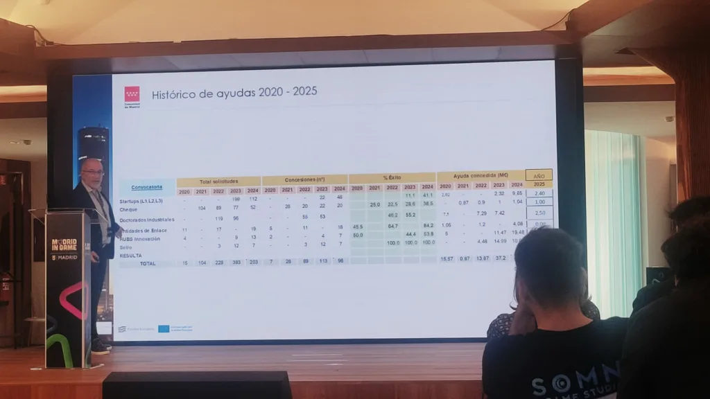 Por parte de la Comunidad de Madrid, hubo representación tanto de la Subdirección General de Innovación Tecnológica como de Film Madrid Region. La región ha explicado las ayudas a proyectos de videojuegos y las distintas líneas relacionadas con innovación.