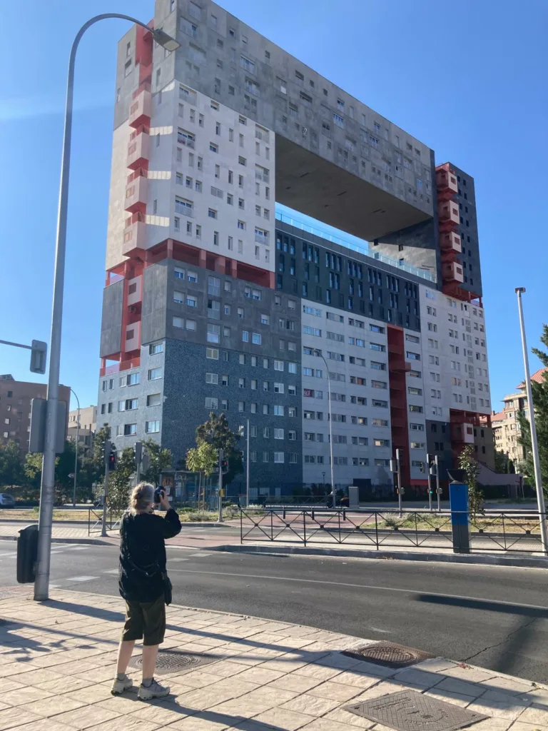 La localizadora cuenta que un proyecto reciente la ha llevado a buscar opciones de vivienda en toda Europa, por lo que le interesaba aprovechar el viaje para ver también alternativas residenciales. Así, durante la visita de Matadero, fue a la colonia del Pico del Pañuelo, ubicada frente al centro cultural y característica por sus fachadas amarillas. “Estos edificios me recordaron a La Habana y a Viejo San Juan”, especifica la profesional.