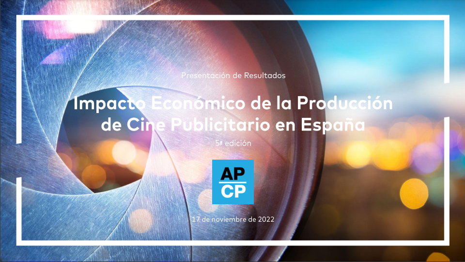 La Asociación de Productoras de Cine Publicitario de España (APCP) presenta la quinta edición del Estudio sobre el Impacto económico de la Producción Publicitaria en España. Un estudio bianual elaborado por la consultora especializada SCOPEN que ofrece un análisis actual en términos económicos del sector de la producción de Cine Publicitario en España.