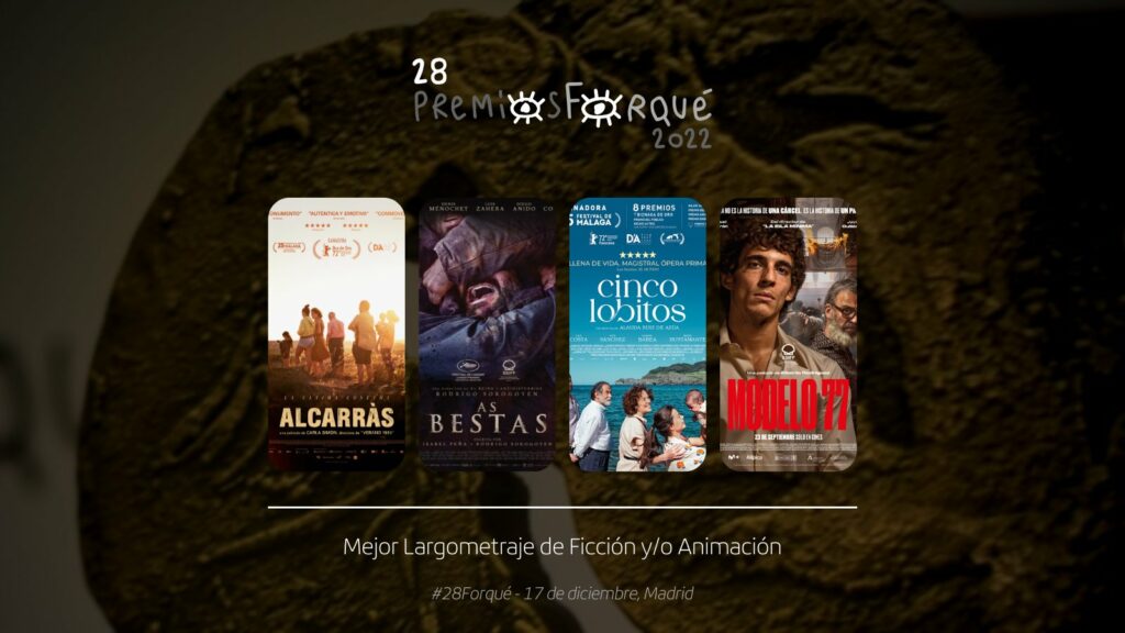 El largometraje Cinco lobitos de Alauda Ruiz de Azúa es la película más votada en el apartado cinematográfico con cuatro nominaciones, y competirá con Alcarràs de Carla Simón, ganadora del Oso de Oro del prestigioso Festival de Berlín, As Bestas de Rodrigo Sorogoyen y Modelo 77 de Alberto Rodriguez, por el Premio Forqué al Mejor Largometraje de Ficción y/o Animación.