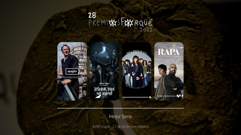 En el apartado televisivo las series Apagón y Rapa de Jorge Coira y Fran Araujo optan a tres galardones. Ambas compiten por el premio a la Mejor Serie de Ficción junto a Historias para no dormir, actualización de la clásica antología de Chicho Ibáñez Serrador, y La unidad de Dani de la Torre y Alberto Marini. Producciones de ficción que en el caso de varios capítulos de las antologías Apagón e Historias para no dormir, se rodaron en localizaciones de la Comunidad de Madrid, así como parte de la segunda temporada de la ficción policiaca La unidad, contando con la asistencia de Film Madrid, oficina de promoción de rodajes de la Comunidad.