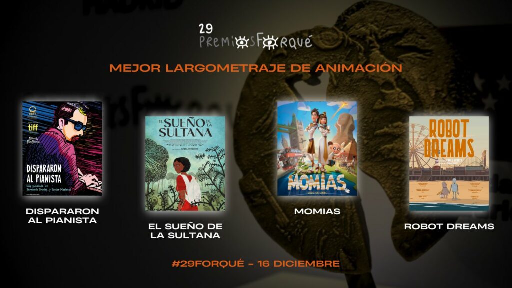 Entre las novedades de la vigesimonovena edición también destaca la creación, por primera vez en la historia de los Forqué, de una categoría independiente para el Mejor Largometraje de Animación, en la que competirán Dispararon al pianista, reencuentro de Fernando Trueba y Javier Mariscal; El sueño de la Sultana de Isabel Helguera; la comedia de aventuras Momias (Juan Jesús García Galocha) y Robot dreams (Pablo Berger), ya galardonada con el Gran Premio Contrechamp del Festival de Annecy. La concesión de la ya tradicional Medalla de Oro se otorgará a Eduardo Campoy, productor cinematográfico y defensor de los derechos de propiedad audiovisual.