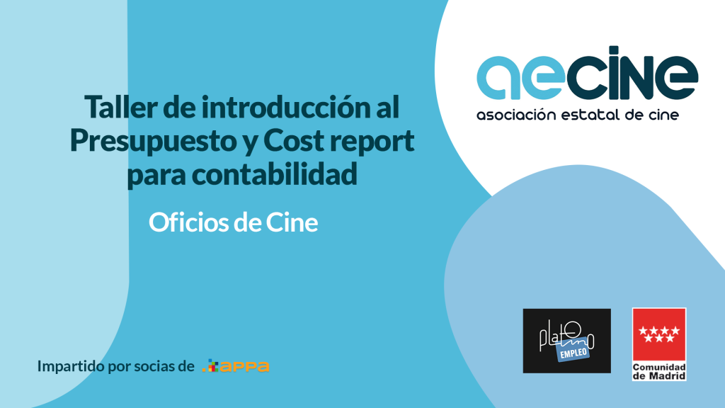 AECINE, Asociación Estatal de Cine, convoca una nueva formación para el sector audiovisual en el marco del programa Oficios de Cine. El nuevo curso ofertado será el Taller de introducción al Presupuesto y Cost report para contabilidad de un proyecto audiovisual, a impartir de forma online del 28 de octubre al 5 de noviembre de 2023. La formación, que se ofrece de manera gratuita, cuenta con el respaldo de Platino Empleo y el apoyo de la Comunidad de Madrid.