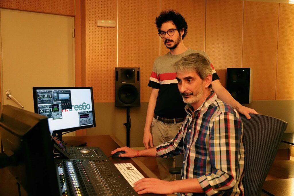 Los mezcladores de sonido Eduardo Castro y Alberto Ovejero, en una sala de Telson.